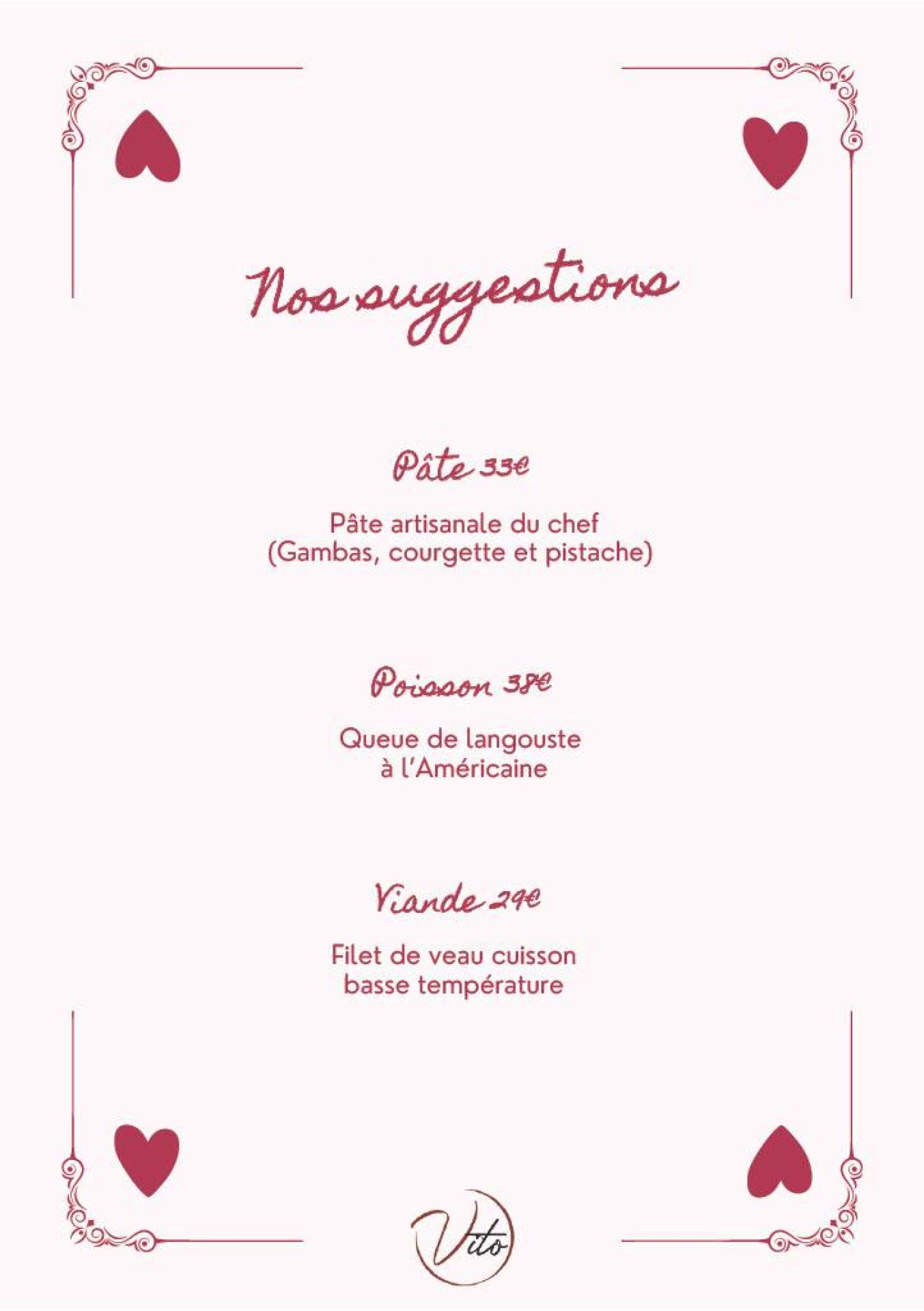 Appelez-nous dès maintenant au 04 84 88 51 22 pour faire plaisir à votre Valentine ou votre Valentin en l’invitant à ce moment créé pour vous par notre restaurant italien Vito à Pernes-les-Fontaines, à quelques minutes d’Avignon, Cavaillon et L’Isle-sur-la-Sorgue. Célébrez la Saint-Valentin 2025 avec romantisme et bonne humeur chez Vito !